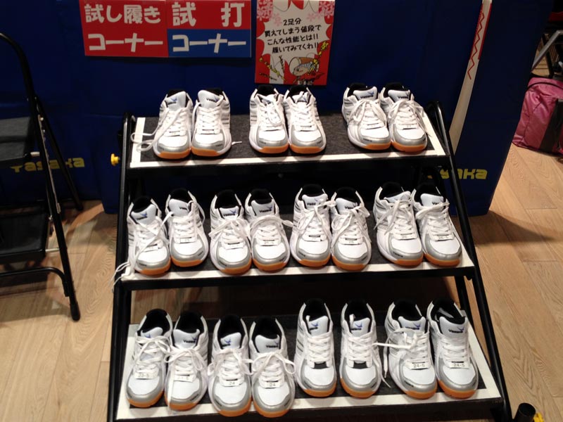 会場には試打コーナーを設け、ラケットの性能とシューズの履き心地を実感して頂きました。
